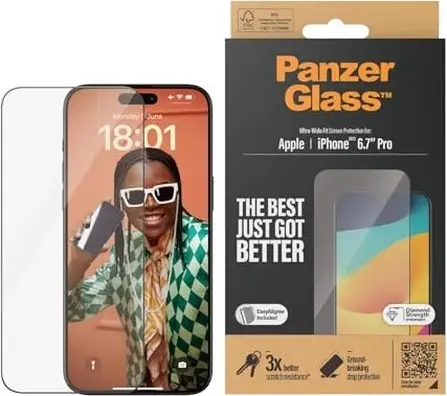 PanzerGlass ultra wide Fit with EasyAligner for Apple iPhone 15 Pro Max купить недорого в Латвии: гарантия качества и оптовые цены
