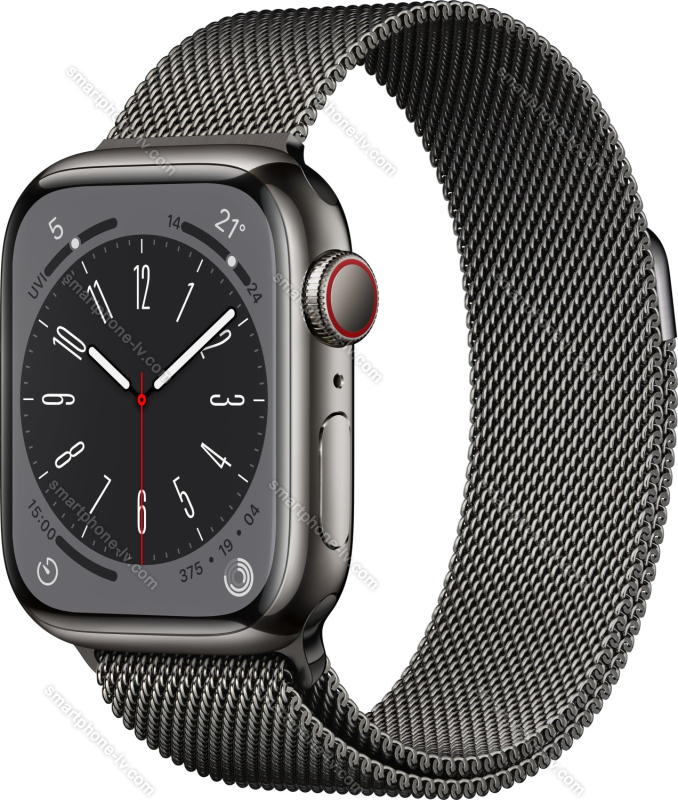 Apple Watch Series 8 (GPS + cellular) 41mm stainless steel graphite with Milanaise-Wristlet graphite, Латвия |