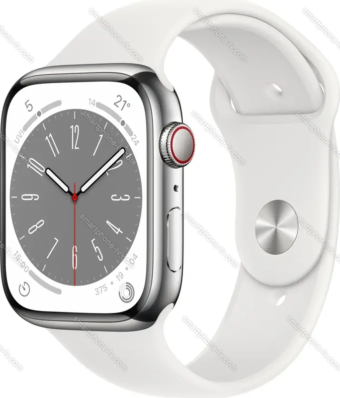 Apple Watch Series 8 (GPS + cellular) 45mm stainless steel silver with sport wristlet white, Латвия |