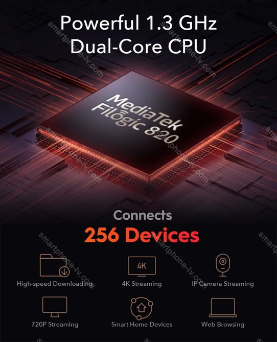 - MediaTek MT7981 MediaTek Filogic 820, 2x 1.30ГГц (ARM Cortex-A53), 256MB RAM, 128MB Flash