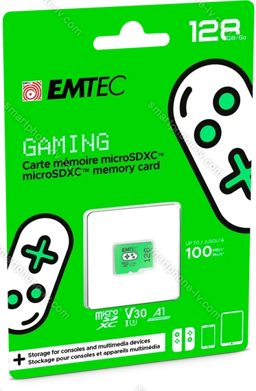 Карта памяти Emtec GAMING R100/W50 microSDXC 128GB, UHS-I U3, A1, Class 10 купить недорого в Латвии: гарантия качества и оптовые цены | |