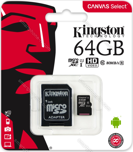 Карта памяти Kingston Canvas Select R80 microSDXC 64GB Kit, UHS-I U1, Class 10 (SDCS/64GB) купить недорого в Латвии: гарантия качества и оптовые цены | |