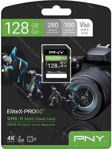 Карта памяти PNY EliteX-PRO 60 R280/W100 SDXC 128GB, UHS-II U3, Class 10 купить недорого в Латвии: гарантия качества и оптовые цены | |