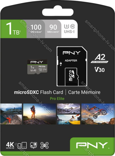 Карта памяти PNY Pro Elite R100/W90 microSDXC 1TB Kit, UHS-I U3, A2, Class 10 (P-SDU1TBV32100PRO-GE) в Риге: купить недорого, лизинг, кредит, рассрочка, Латвия | |