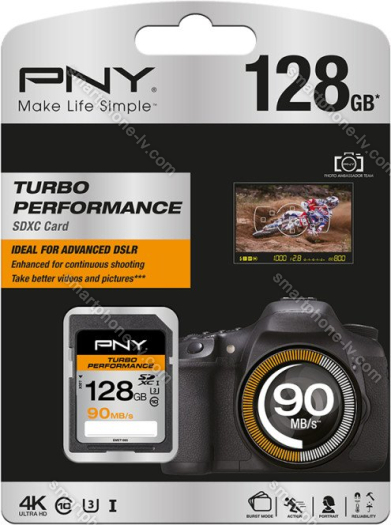 Карта памяти PNY Turbo Performance R90/W60 SDXC 128GB, UHS-I U3, Class 10 (SD128TURPER90-EF) купить недорого в Латвии: гарантия качества и оптовые цены | |