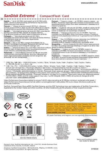Карта памяти SanDisk Extreme R120/W60 CompactFlash Card 32GB купить недорого в Латвии: гарантия качества и оптовые цены | |