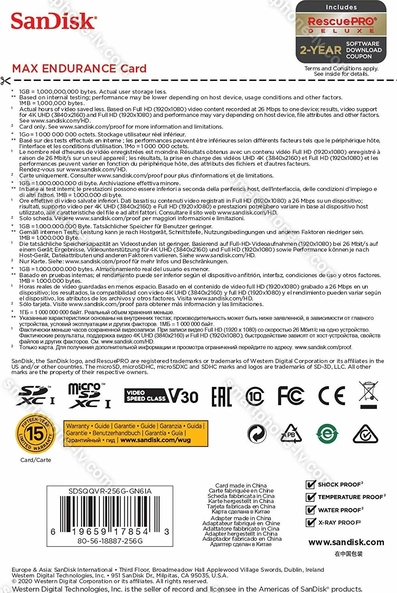 Карта памяти SanDisk Max Endurance R100/W40 microSDXC 256GB Kit, UHS-I U3, Class 10 купить недорого в Латвии: гарантия качества и оптовые цены | |