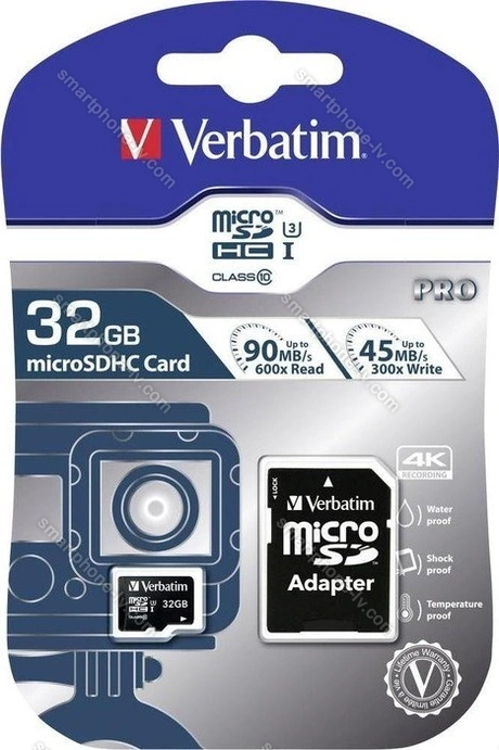 Карта памяти Verbatim Pro U3 R90/W45 microSDHC 32GB Kit, UHS-I U3, Class 10 купить недорого в Латвии: гарантия качества и оптовые цены | |